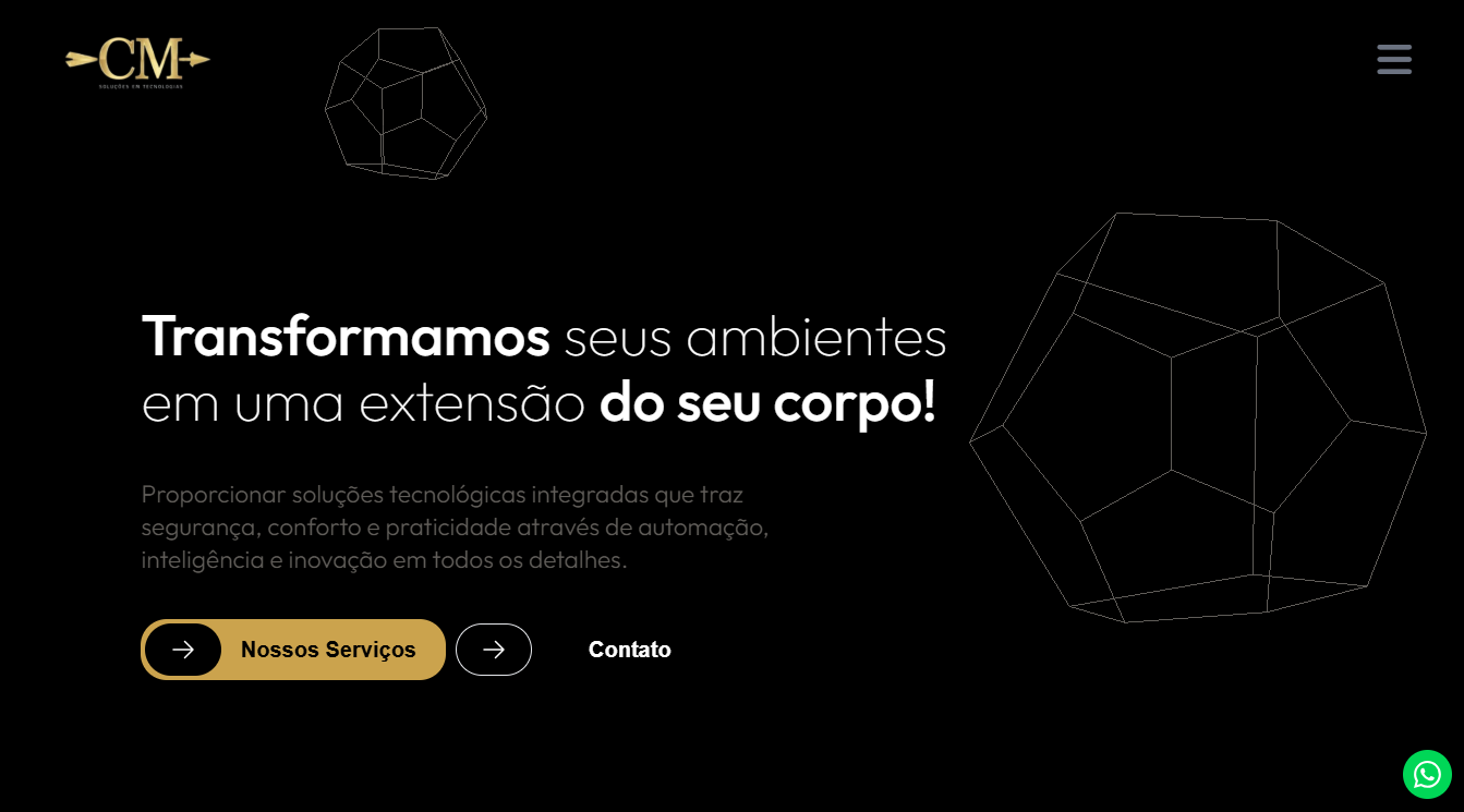 Este site comercial foi um projeto desenvolvido para a empresa CM Tecnologias, com destaque para a utilização da biblioteca three.js